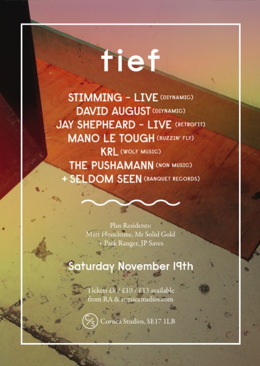 On Saturday the 19th of November, Tief returns with a massive line-up including live sets from Hamburg’s Stimming and London’s own Jay Shepheard.